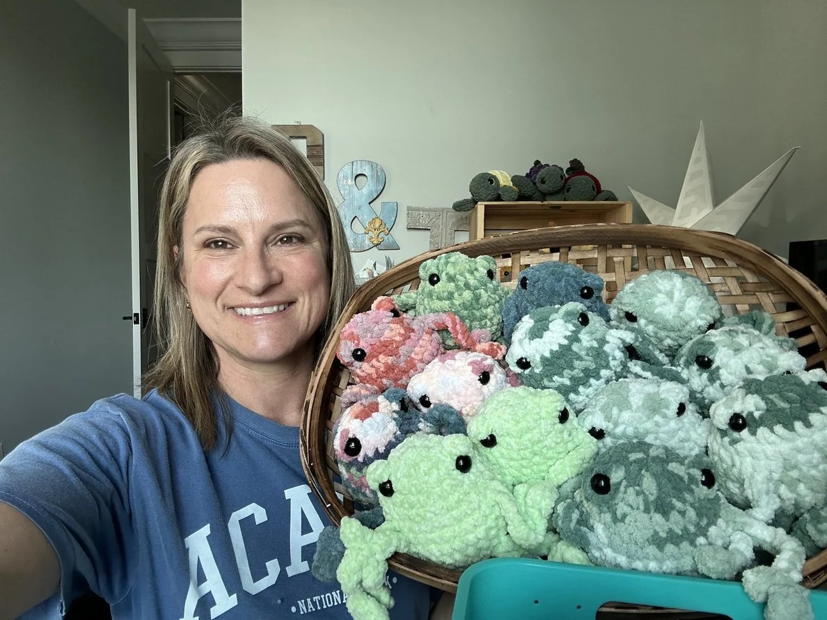 Let me introduce myself! My name is Toscha and I have a serious addiction- crochet and all things crochet. I am a retired teacher and found the love of crochet while de-stressing after long teaching days. I began selling plushies on Etsy and attending markets. Last year I began designing crochet patterns and really love the experience. So far I have a mama mallow pattern, coiled snake, wombat and my most recent is an adorable forest frog who wears a sweater! I have also started creating stitch markers. Painting safety eyes is also a love of mine and came out of necessity in needing them for my plushies. Stay tuned to my next projects because there will be many! Thank you so much for being here and visiting my site! :) Toscha