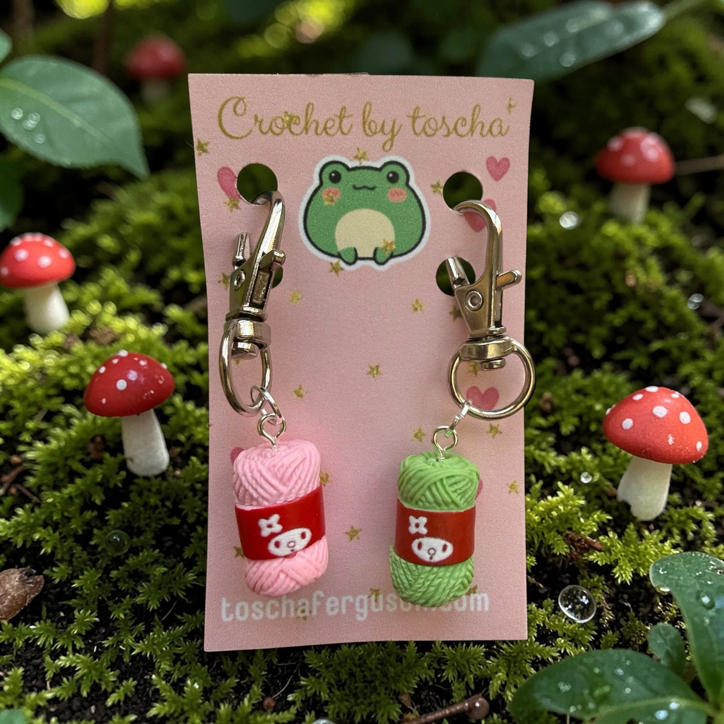 These adorable stitch markers will bring joy to your next project. They are made of resin and are light weight. They have silver lobster clasps.